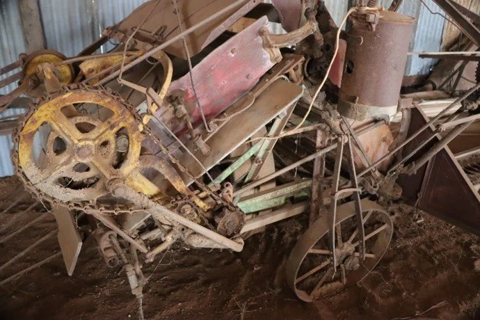 Used to cut sheaf hay. Usually, oats were grown for animal feed. The green crop was cut and tied into sheafs by the binder and operator.