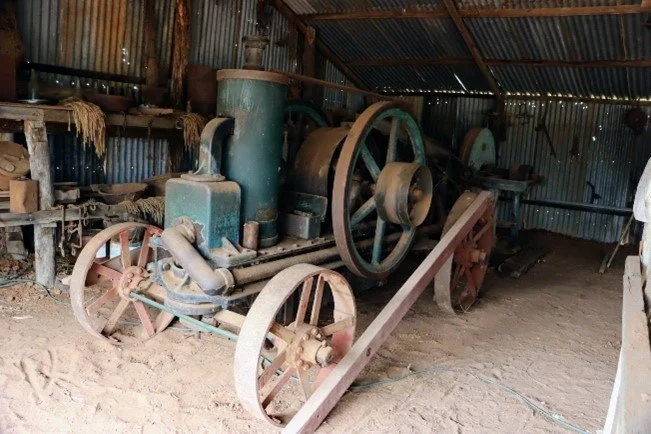 Engine was used to drive the chaff cutter; it is either a petrol start with a magneto or lamp start or kerosene start. Made in Ballarat. We were lucky enough to find the engine still standing in a shed. It was used by Mr. Jack Clark. We believe it was last used in 1960.